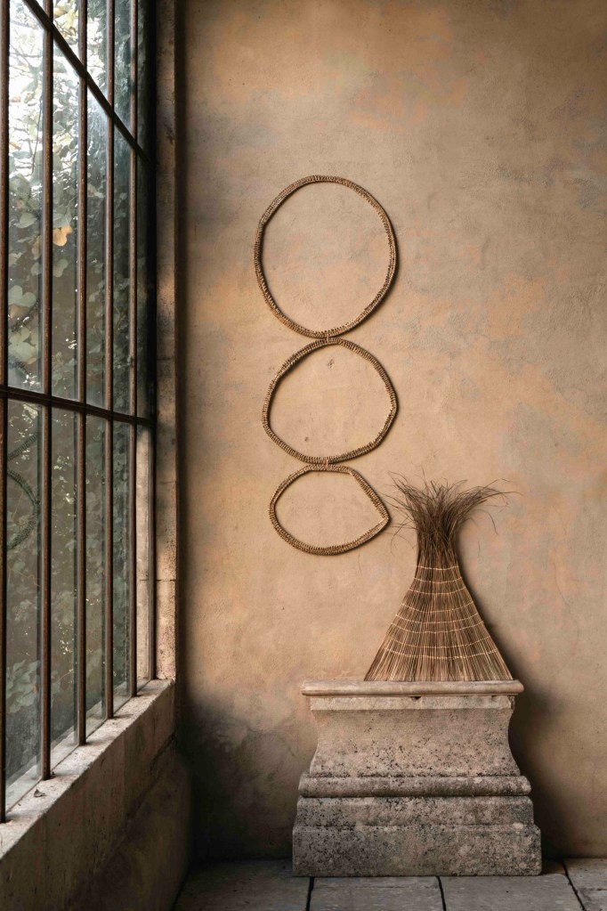 Aurore Pélisson travaille le textile comme une prolongation du corps et de la nature. Ses œuvres, nourries de teintures végétales et de matières brutes, révèlent une esthétique viscérale. À travers sa démarche, elle interroge notre lien au vivant et célèbre « la chair de nos corps, la chair de notre terre ». Manon Monge, quant à elle, transforme les graminées en tissages, en parures murales, en gestes ancestraux revisités. Elle donne forme au sauvage et au sacré, en ramenant l’invisible dans le quotidien.