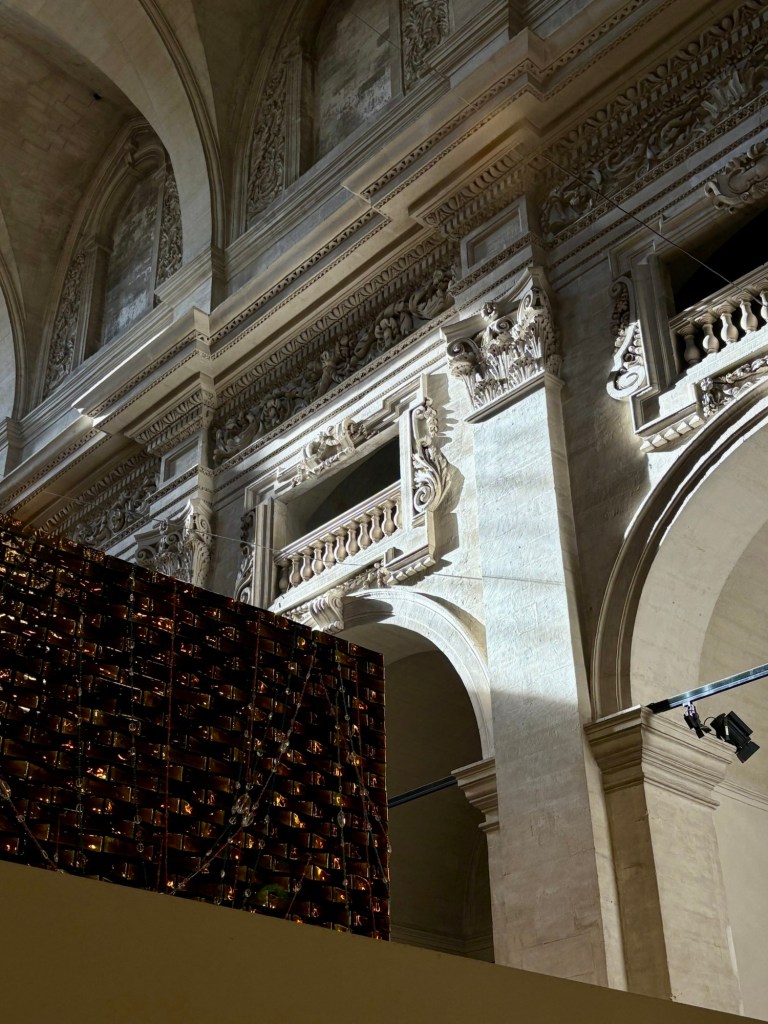 Les blocs de verre jouent avec la lumière, se reflètent dans les angles, soulignent les lignes anciennes de pierre et les reliefs sculptés. Leur présence silencieuse rappelle que la mémoire se prolonge dans le dialogue des matériaux. Le contemporain n’efface pas, il complète.