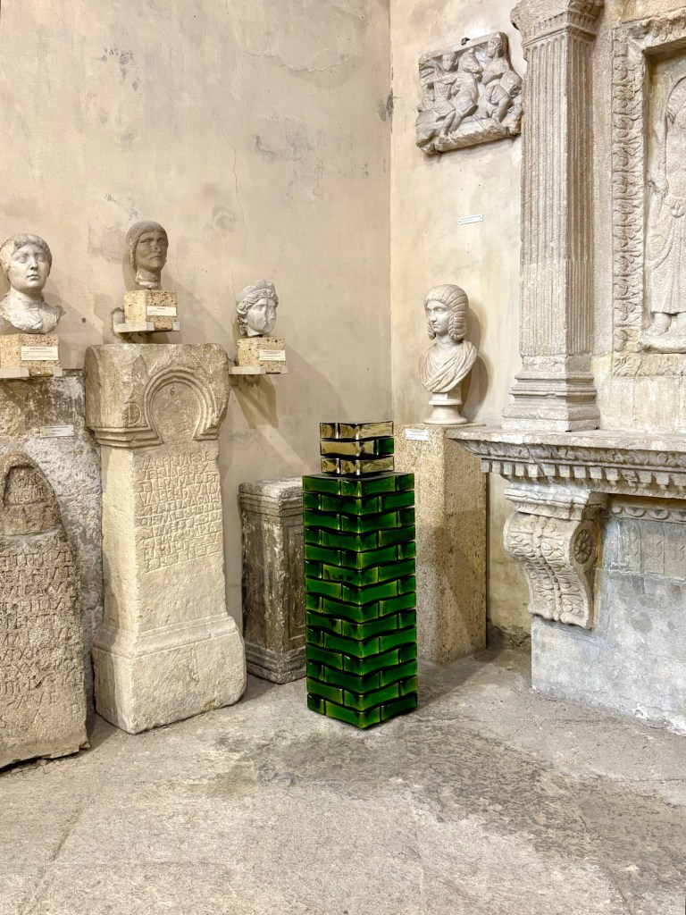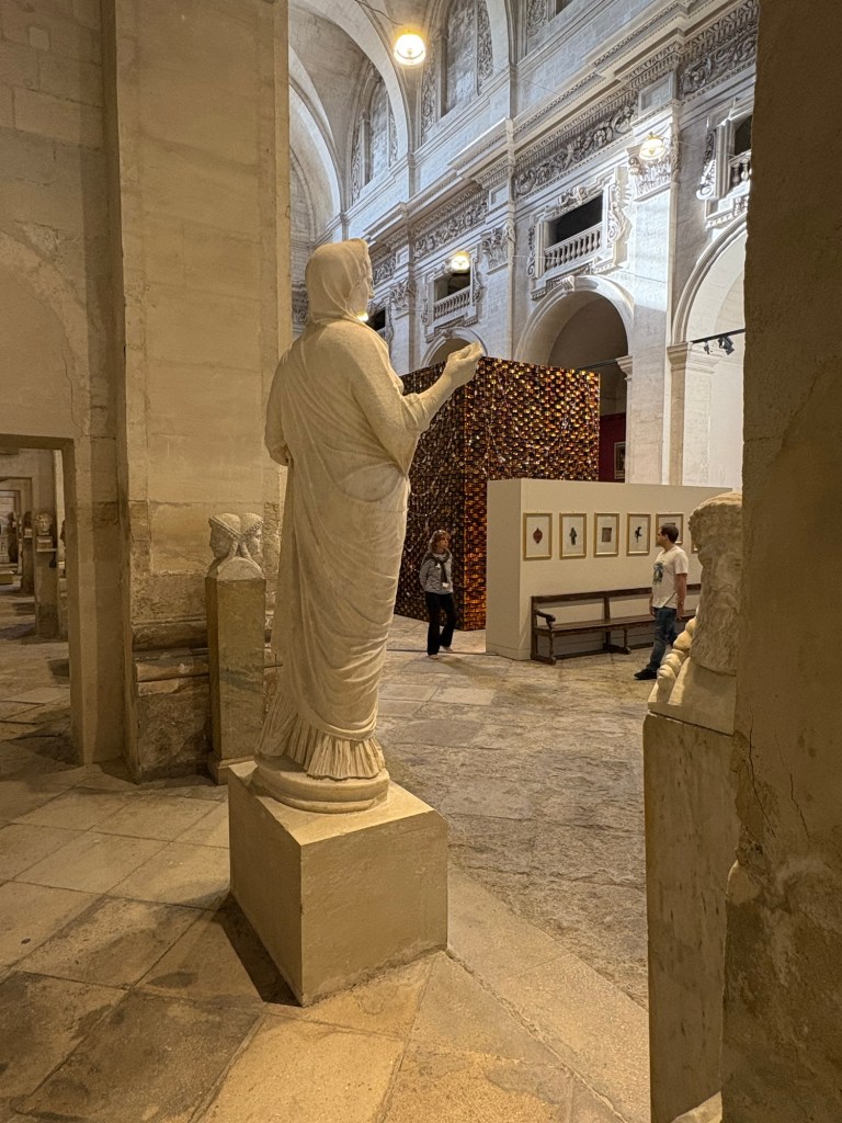 L’exposition dévoile les œuvres de Jean-Michel Othoniel au Musée Lapidaire. Les pierres dialoguent avec le verre, matériau de prédilection de l’artiste. Stèles, monuments funéraires, reliefs et sculptures gréco-romains peuplent cette ancienne église des Jésuites. Othoniel y installe des séries de sculptures en briques de verre colorées, contrastant avec la matière brute de la collection archéologique. Precious Stonewall et Wonder Block accueillent le visiteur dès la façade. D’autres œuvres se dissimulent à l’intérieur, entre les stèles antiques. Le Musée Lapidaire devient un espace de rencontre où morts et vivants fusionnent, où l’Histoire et la rêverie dialoguent entre permanence du monument et souffle éphémère de l’art.