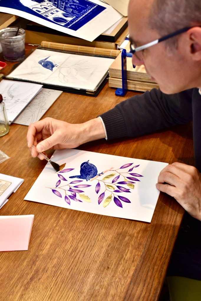 Gilles Bosquet est graveur et doreur à Avignon. Avec son atelier Graine de Gouge, il conçoit des gravures, des gaufrages ou encore des dorures décoratives sur mesure. Il mêle savoir-faire traditionnel et regard contemporain en fusionnant le métal et le papier. En réalité, chaque pièce porte la marque du geste juste, du temps et de la main. L’atelier se visite sur rendez-vous et fait partie du réseau La Route des Arts & Gourmandises.