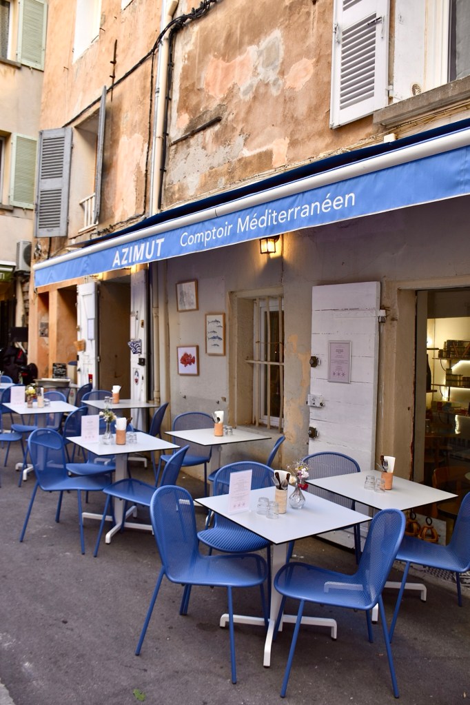 Azimut possède une merveilleuse terrasse extérieure, mais aussi une salle intérieure pour créer des moments de partage dans une atmosphère douce et accueillante. Jade, la fondatrice de ce concept qui combine restaurant, commerce gourmet et cave, crée un univers vivant où le goût est roi. L’adresse incarne la fusion réussie entre gastronomie, terroir et convivialité. Finalement, les amateurs de plaisirs simples et authentiques savent qu’ils peuvent se réfugier au sein de ce lieu séduisant pour une escale dans le paysage culinaire aixois.