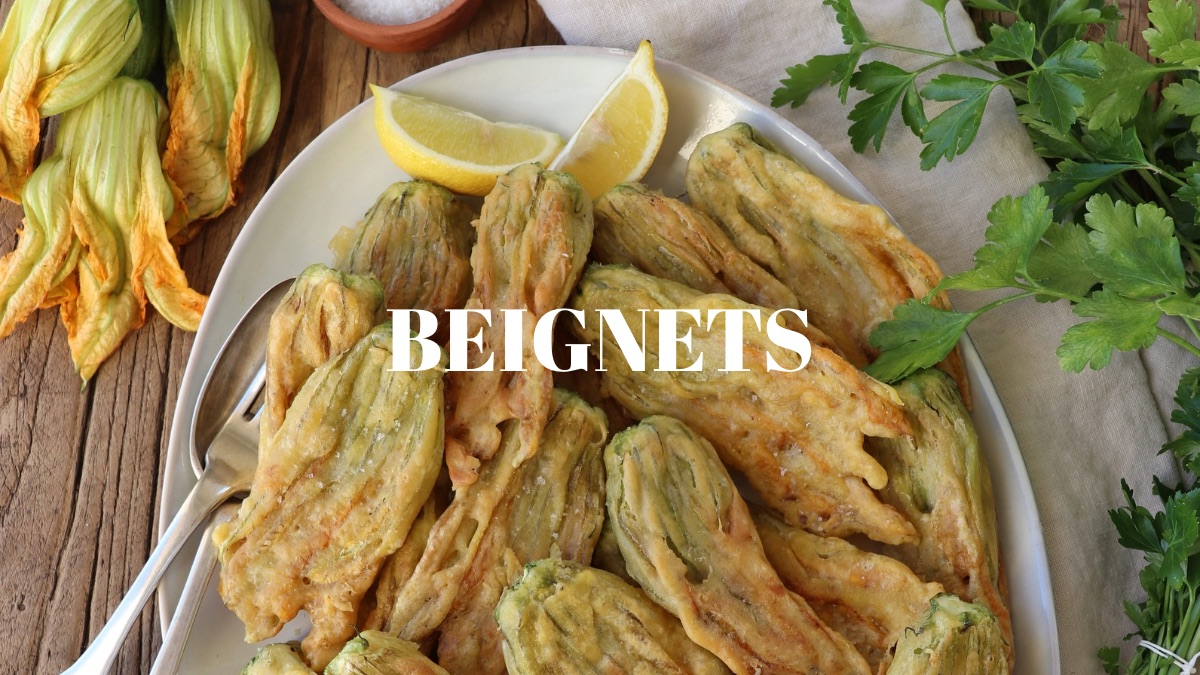 Les beignets de fleurs de courgettes sont nés dans les régions agricoles méditerranéennes, là où la courgette pousse facilement l’été et où la cuisine utilise ce que le jardin offre, avec simplicité et générosité. On les retrouve notamment en Provence, sur la Côte d’Azur et en Italie. En été, sur les marchés du Sud, on trouve assez facilement des bouquets de fleurs de courgette. Les fleurs sont fines et délicates, donc, sans tarder dès le retour du marché, on prépare la pâte à beignet pour une entrée ou un apéritif gourmand aux accents méditerranéens.