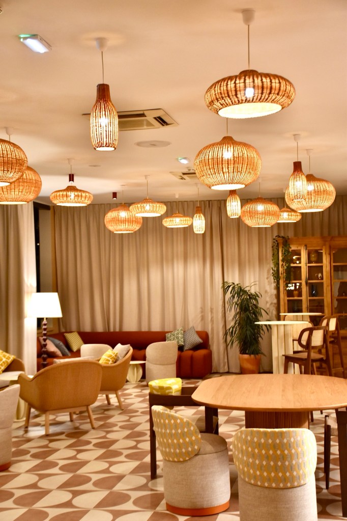 Entièrement repensé dans un ADN élégant et contemporain, l’hôtel reste tout de même ancré dans le paysage arlésien. La ville d’Arles clame haut et fort son identité du Sud très particulière. Bien que l’extérieur n’ait pas encore fait peau neuve, avec ses vitres façon miroirs teintées, l’intérieur, lui, fait toute la différence. Dès l’entrée de l’hôtel, l’histoire et le patrimoine arlésien et camarguais refont surface. Les matières nobles et chaleureuses, telles que le bois ou la paille, y règnent. L’héritage arlésien magnifié vient ainsi compléter l’expérience que propose la bâtisse, située juste à côté de l’office de tourisme d’Arles Camargue. Les visiteurs peuvent alors s’imprégner de la culture d’Arles tout en profitant de leur séjour. D’ailleurs, les artisanes Emma Bruschi et Magali d’Enamoura viennent consolider ce fait. En effet, elles habillent la salle principale et le magnifique bar lumineux de leurs œuvres : cadres à conception en paille pour l’une, luminaires en céramique éclairant le comptoir du bar pour l’autre. Ce choix vient renforcer l’image du Mercure Arles Centre Arènes avec goût.