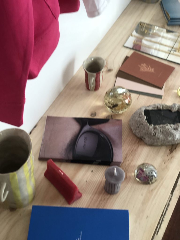 Coline et Steven présentent donc leur travail au sein du showroom/concetpstore. Cela permet aussi d’offrir une visibilité a des artistes marseillais tels que de la papeterie avec la marque je suis fou de vous mon amour. Des objets de déco en résine de re_zine. Les livres photos édition révolue. De la céramique avec Clara de la Cera. Les lunettes sont de Waiting for the Sun. Des bougies et les abécédaires sont de Ferdinand. paquet. Une collection de vêtements de Almost Free Services, des peintures de Avrandinis et bien d’autres…
