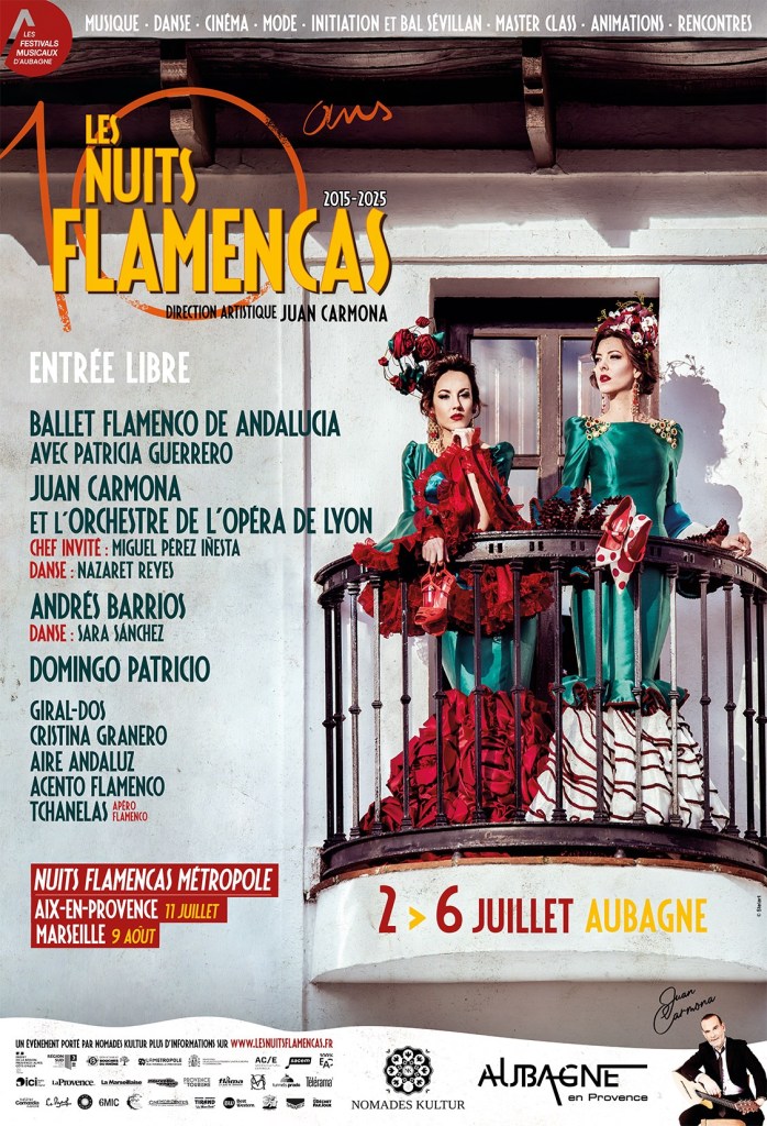 Le flamenco a trouvé sa maison en Provence, et il y règne avec éclat depuis une décennie. Pour leur 10e édition, les Nuits Flamencas d’Aubagne prévoient une programmation exceptionnelle. Cette année tradition et innovation s’invitent dans une ambiance chaude et vibrante. Le festival célèbre aussi cette année les 40 ans de carrière de Juan Carmona, son fondateur et maître de la guitare flamenca. Le 4 juillet, Carmona sera au cœur d’une grande soirée anniversaire. Il montera d’abord sur scène avec ses musiciens, puis donnera une représentation unique de sa Sinfonia Flamenca. Entouré de l’Orchestre de l’Opéra de Lyon, le chanteur donnera un concert entre flamenco pur et musique symphonique. Autre temps fort : le 5 juillet, le mythique Ballet Flamenco d’Andalousie présentera en première française sa toute nouvelle création, Tierra Bandita. Ceballet mêle puissance chorégraphique, rythmes percussifs et poésie andalouse.